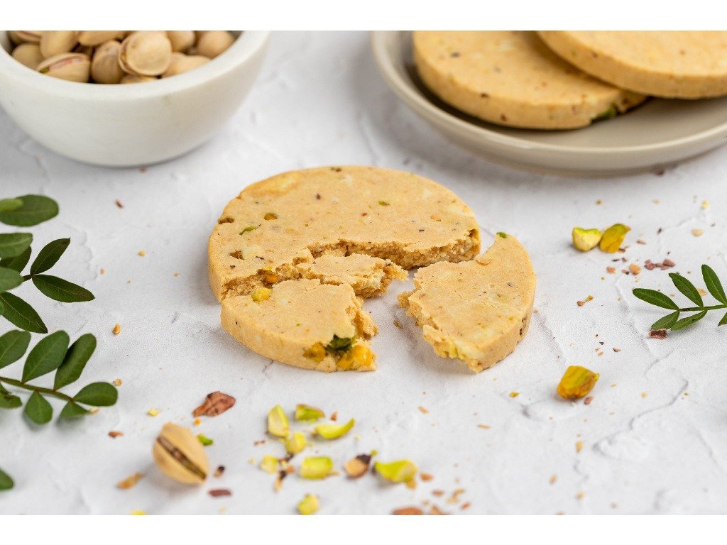 V piškotki so hrustljavi kosi BIO pistacij, ki so vir kakovostnih maščob z visokim deležem nenasičenih maščobnih kislin in vitaminov skupine B.