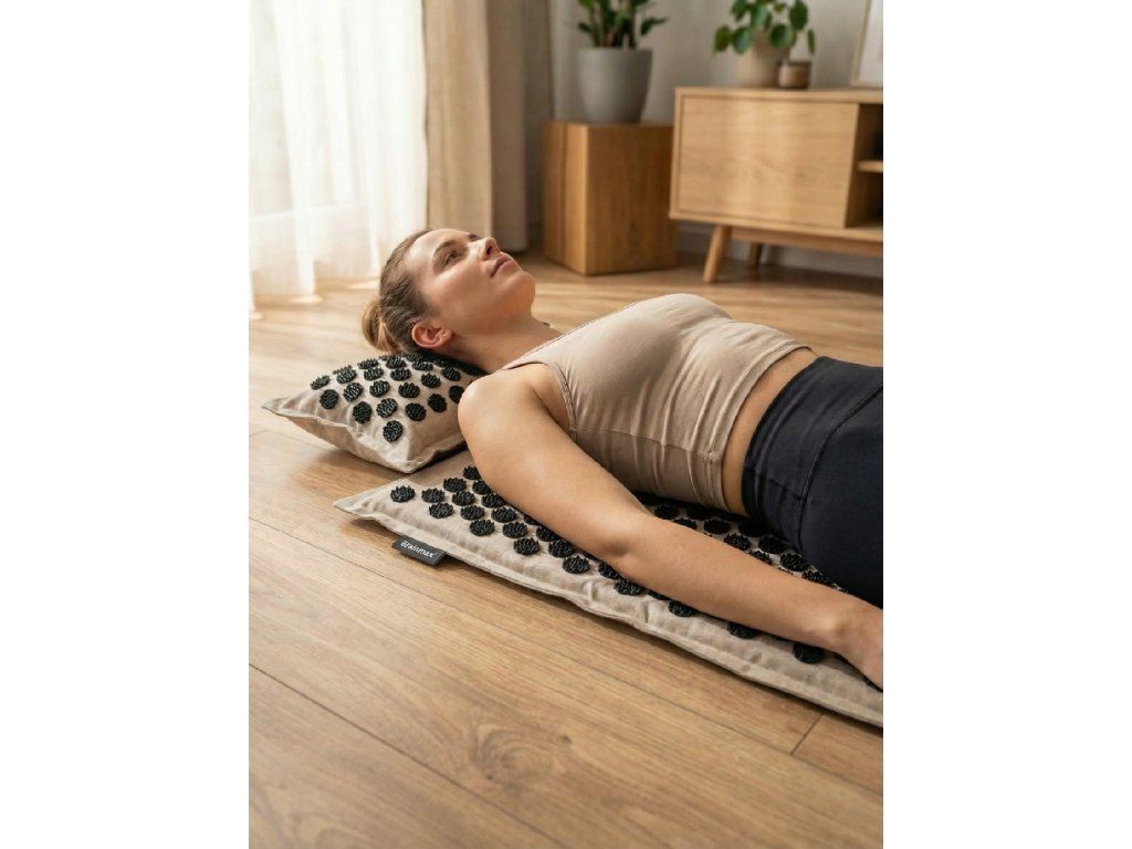 Akupresurna podloga BrainMax z blazino, bež Spodbuja sprostitev, sproščanje in prekrvavitev