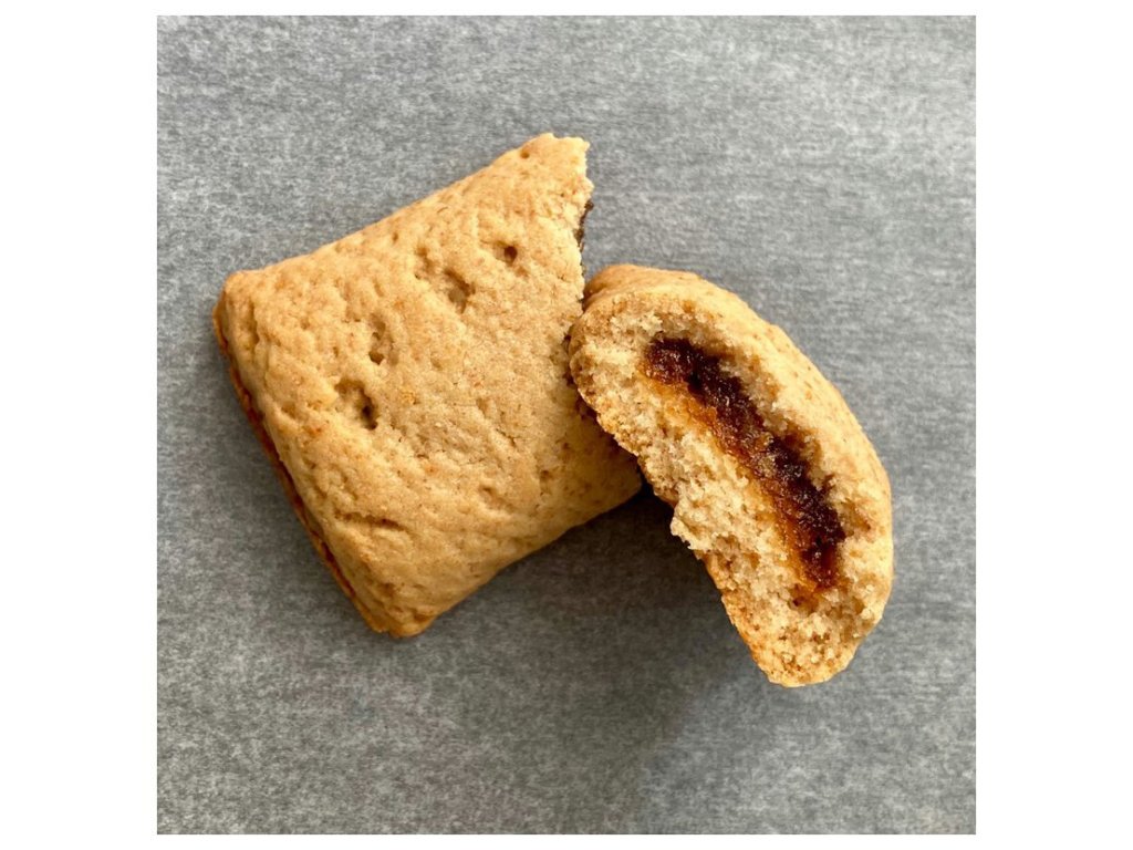 Jabolčni nadev* 35 % (zgoščeni jabolčni sok*, zgoščeni jabolčni pire*), polnozrnata moka * 21 %, pirina moka * 20 %, zgoščeni jabolčni sok* 20 %, rastlinska olja in maščobe* (sončnična*, kakav*), jajce *, riževa moka*, posneto mleko v prahu *, gluten, sredstvo za vzhajanje (natrijev karbonat), naravna aroma vanilije*. Vsebuje naravno prisotne sladkorje.