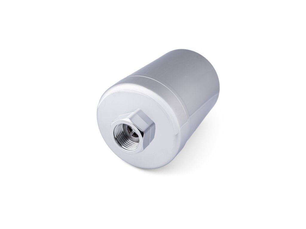 Filter je izdelan iz visokokakovostnega kovinsko prevlečenega ohišja in certificiranega aktivnega oglja , kar zagotavlja dolgo življenjsko dobo, mehansko odpornost in stabilen pretok vode . Osnova je kovinsko prevlečeno ohišje, ki ščiti notranji filtrirni medij in hkrati daje eleganten videz. V notranjosti je filter z aktivnim ogljem , skozi katerega voda med prhanjem gladko teče. Aktivno oglje je znano po svojih absorpcijskih lastnostih in se pogosto uporablja pri filtraciji vode.