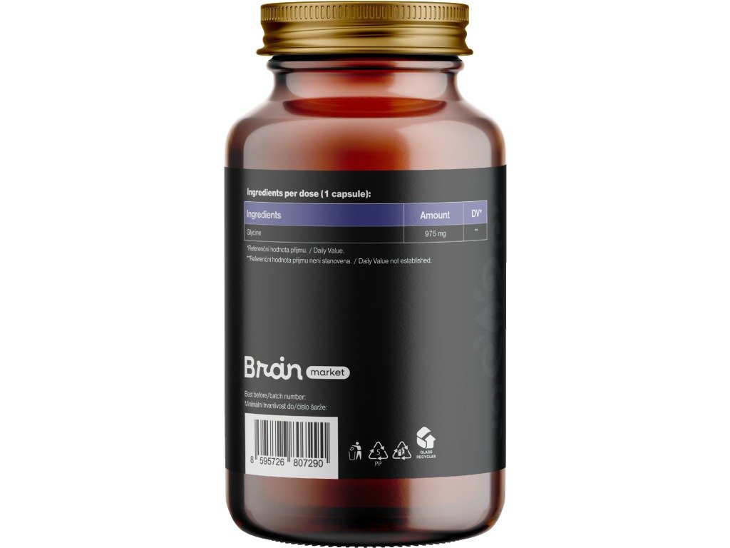 Sestava: Glycin. Rastlinska kapsula na osnovi HPMC. Brez vsebnosti balastnih snovi.