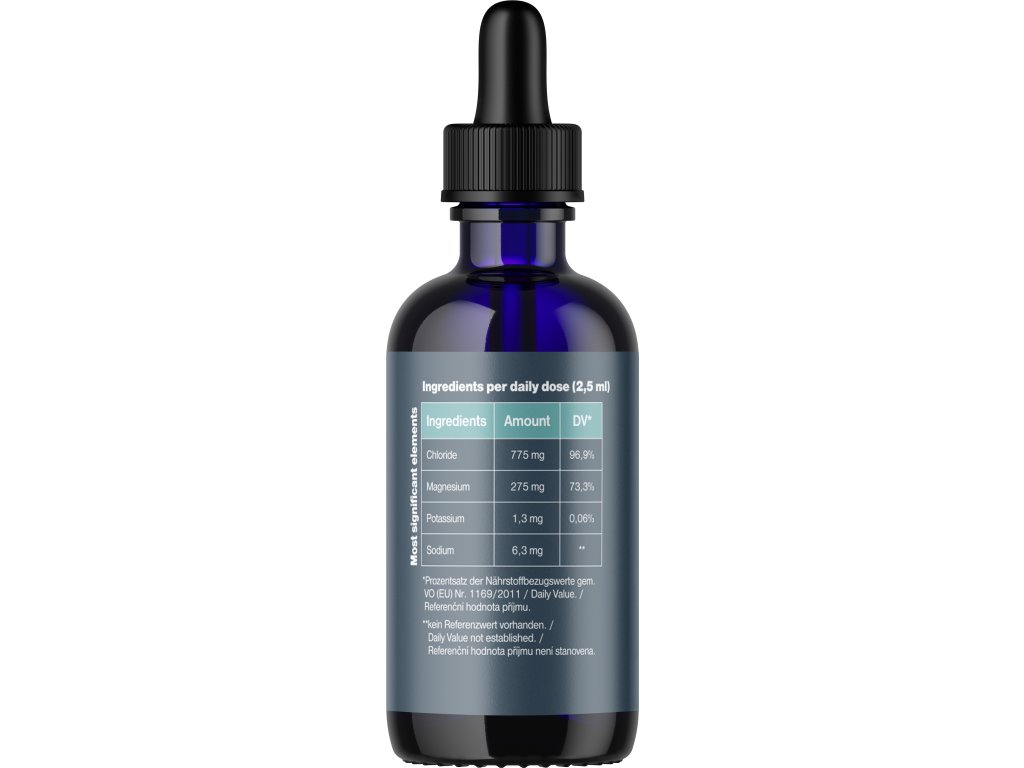 BrainMax Liquid Daily Minerals, Minerali v tekoči naravni obliki za alkalizacijo in remineralizacijo, 120 ml 220 mg magnezija + 70 drugih mineralov in elementov v sledeh, Za obnavljanje magnezija in proti prekomernemu zakisanju organizma