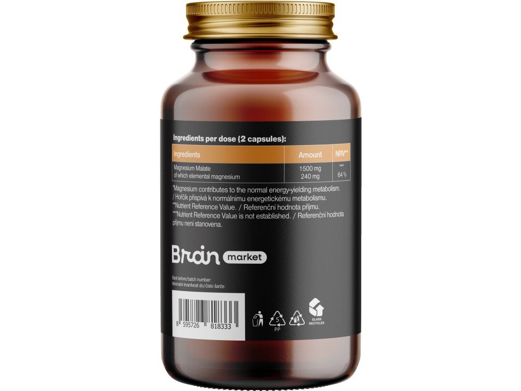 BrainMax v svojem portfelju ponuja dva izdelka z glavno sestavino magnezijem malatom. Energy Magnesium® ponuja malat iz surovine Nutrascience minerals™ Mg20+, 1000 mg v eni kapsuli, kar ustreza 200 mg elementarnega magnezija na kapsulo. BrainMax Magnesium Malate uporablja 100% malat, ki ga v kapsulo spravi 750 mg. Ta vrednost ustreza 120 mg elementarnega magnezija. Primerjava v grafiki temelji na ceni 200 kapsulne različice BrainMax Energy Magnesia®.