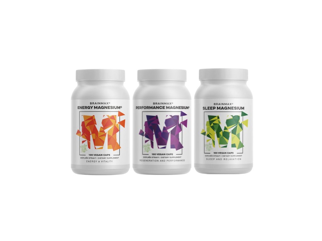 BrainMax Magnezijev trio TRIO magnezijev komplet za cel dan, prehransko dopolnilo