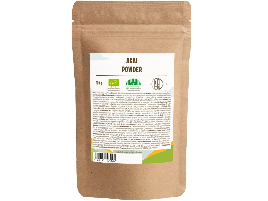 Acai je vijolično super sadje, polno hranil. BrainMax Pure Acai je visokokakovosten organski prah, narejen iz liofiliziranih jagod, ročno obranih v Kolumbiji. Acai je že stoletja osnovno živilo amazonskih kultur. Te jagode z nizkim glikemičnim indeksom so polne številnih zdravstvenih koristi, vključno z omega maščobnimi kislinami in vlakninami. Acai prah je bogat z vitaminom C, ki podpira imunost, tvorbo kolagena in absorpcijo železa. Vsebuje tudi vitamine A, B, E ter minerale, kot so fosfor, kalcij in kalij.
