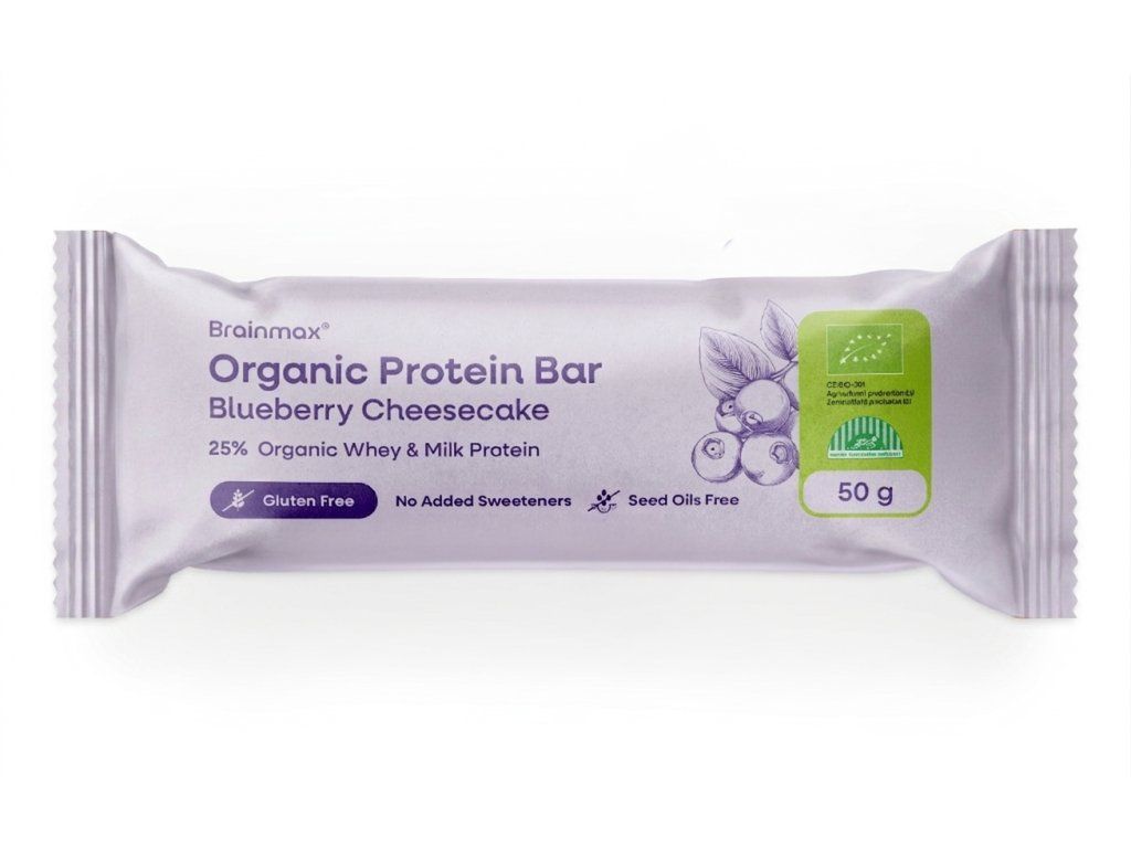 BrainMax Blueberry Cheesecake Protein Bar, BIO, 50 g *Certifikat CZ-BIO-001 / Protein Bar Blueberry Cheesecake
