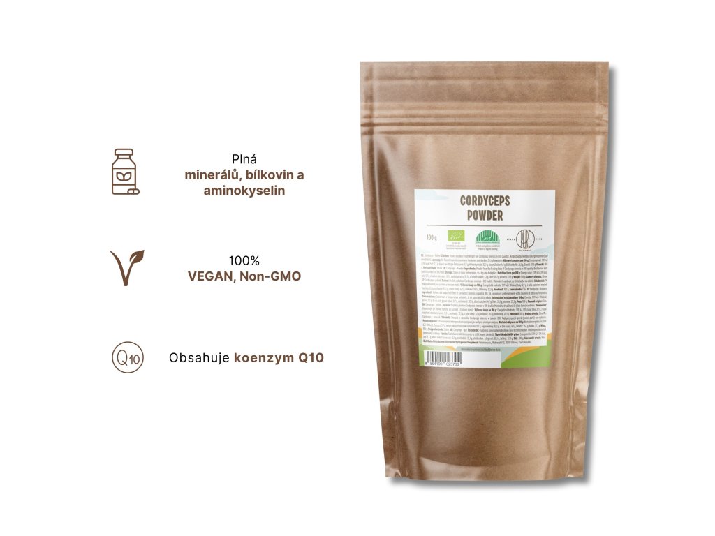 BrainMax Pure Cordyceps sinensis v prahu BIO, 100 g *Certifikat CZ-BIO-001