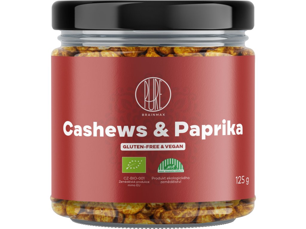 BrainMax Pure indijski oreščki in paprika, indijski oreščki in rdeča paprika, BIO, 125 g // Rok uporabe. *Potrdilo CZ-BIO-001// Velja do 30. 9. 2025