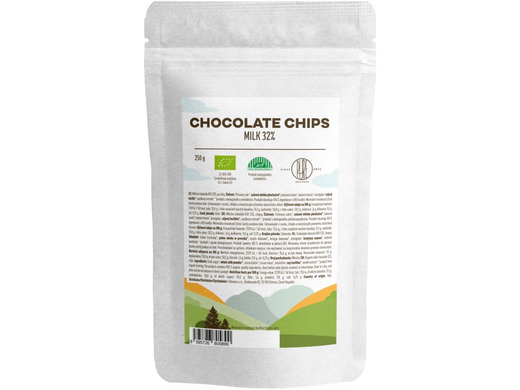 BrainMax Pure Milk Chocolate Chips, koščki mlečne čokolade, BIO, 250 g *Certifikat CZ-BIO-001