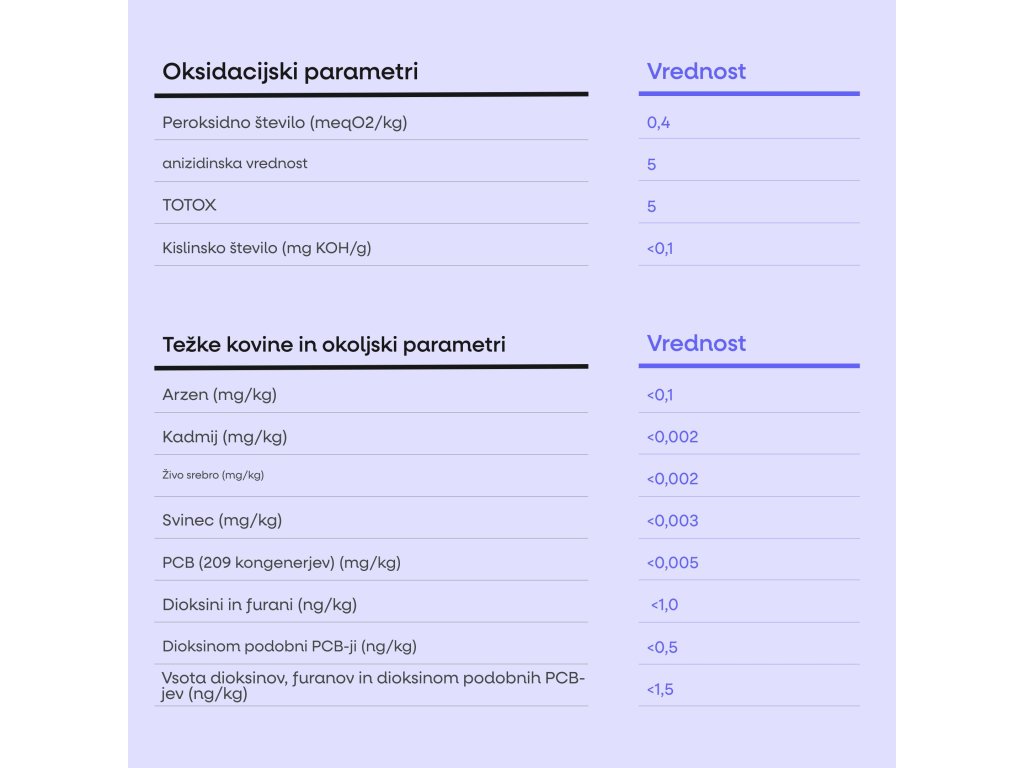 Oksidativna stabilnost in čistost sta bistvena kazalnika ne le kakovosti omega-3 olj , temveč tudi njihovega pozitivnega ali negativnega vpliva na telo. Zato sta ti vrednosti za nas pomembni. TOTOX in drugi kazalniki odražajo stopnjo oksidacije in s tem svežino in stabilnost izdelka. Hkrati spremljamo tudi vsebnost težkih kovin, kot sta arzen ali živo srebro, in drugih onesnaževalcev okolja, vključno z dioksini in PCB-ji (polikloriranimi bifenili). Rezultati analiz zagotavljajo pozitiven učinek olja in njegovo primernost za dolgoročno uživanje.