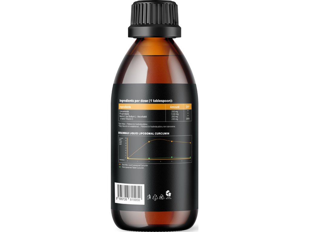 Kurkumin je že dolgo kritiziran zaradi svoje slabe absorpcije. Njegova molekula je slabo topna v vodi in telo jo hitro izloči. To znatno omejuje njegovo uporabnost iz običajnih prehranskih dopolnil. Vendar pa je študija, ki je primerjala tekoči liposomski kurkumin BrainMax s klasično obliko tablet, pokazala temeljno razliko. Liposomski kurkumin je imel do 46,7-krat večjo biološko uporabnost in je vzdrževal povišane ravni v krvi celih 6 ur. To pomeni, da ima telo več aktivne sestavine na voljo dlje časa. Z drugimi besedami, točno to, kar pričakujete od vrhunskega prehranskega dopolnila.