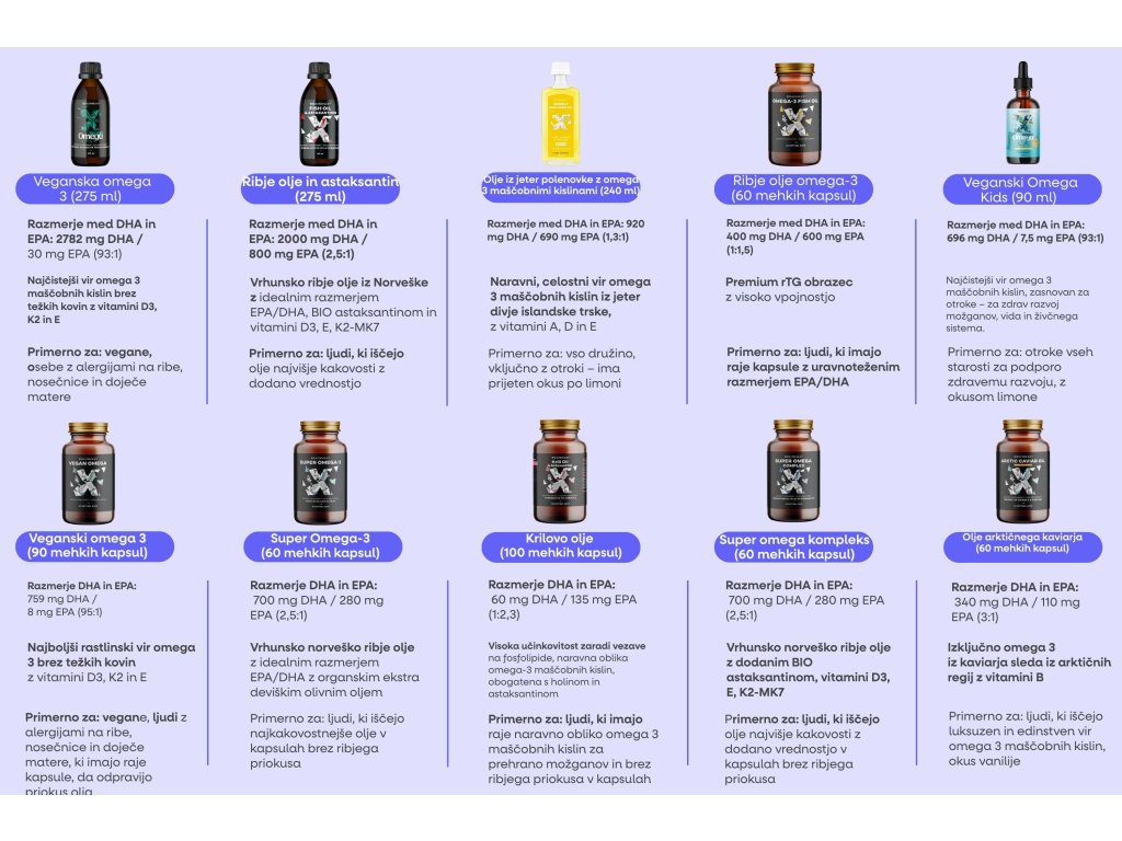 Pri izbiri bodite pozorni na omega-3 iz mikroalg in teste oksidativne stabilnosti. Najboljše omega-3 brez ribjega olja vsebujejo poleg DHA in EPA tudi antioksidante, kot sta visokokakovostno olivno olje ali vitamin E.