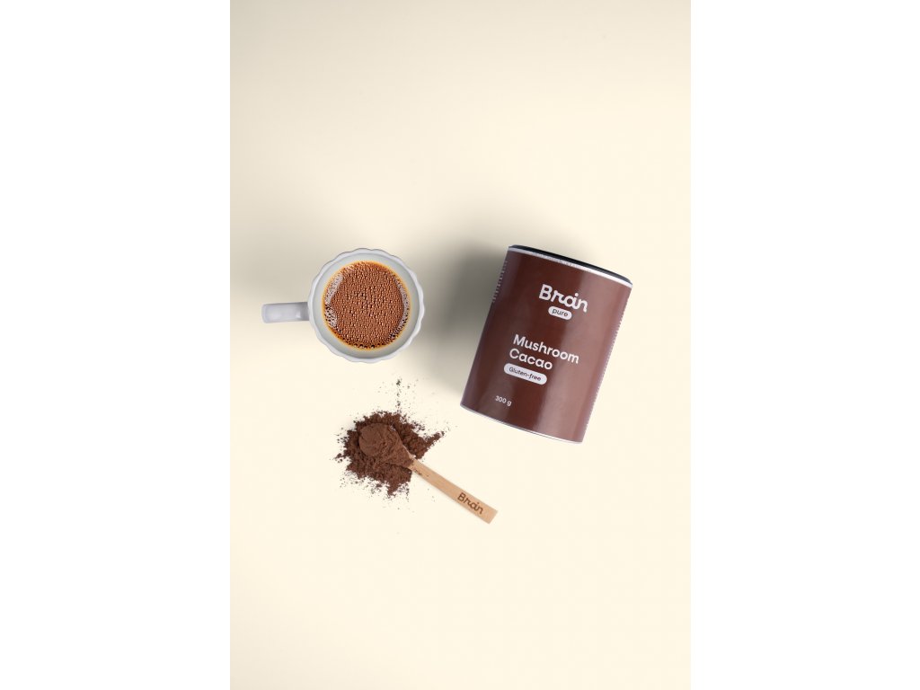BrainPure Mushroom Cacao, BIO, 300 g Kakav z gobami reishi in čaga / *certifikat CZ-BIO-001