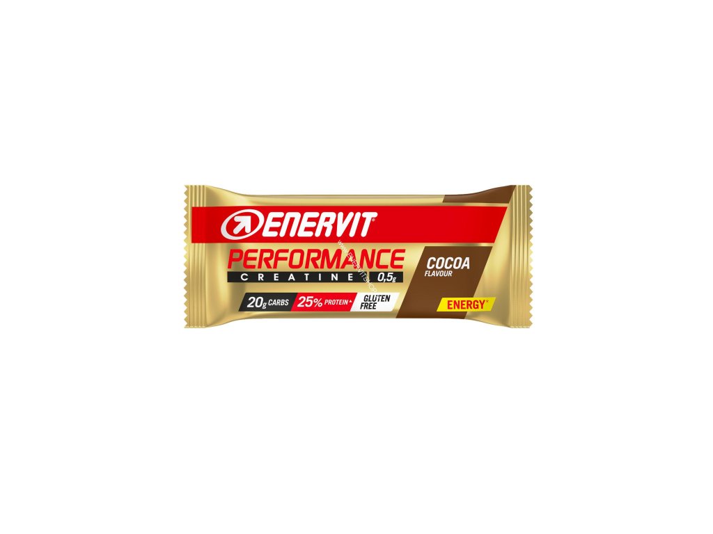 Enervit Performance Bar s kreatinom je energijska ploščica, primerna za intenzivne ponavljajoče se nastope - dolge športne nastope z izrazito intenzivnimi odseki, kjer je potrebno veliko energije, za mišice pa več kot le energija (kreatin, beljakovine, aminokisline).