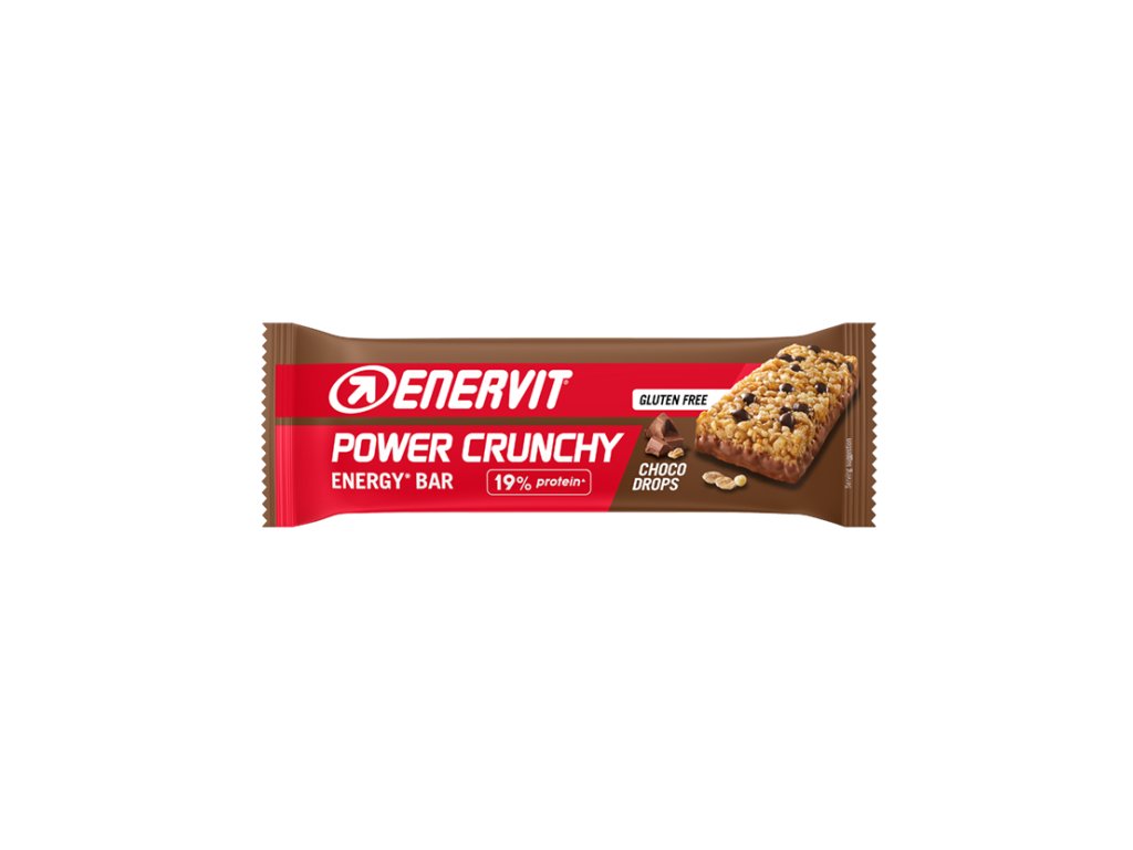 Enervit Power Crunchy Bar združuje okusen okus z visoko hranilno vrednostjo – vsebuje 19 g beljakovin na 100 g ter je obogatena z magnezijem in vitaminom B1. Magnezij prispeva k zmanjševanju utrujenosti in izčrpanosti, vitamin B1 pa k normalni presnovi energije. Osnovo sestave predstavljajo kakavovi, sojini kosmiči, brezglutenski oves, koruzni in riževi kosmiči, dopolnjeni s hidroliziranimi vlakninami cikorije. Ploščica ne vsebuje glutena, zato je primerna tudi za osebe s celiakijo ali intoleranco na gluten. Zahvaljujoč praktični embalaži se prilega v žep, nahrbtnik ali torbico, idealna je kot prigrizek čez dan ali lahek prigrizek po vadbi.