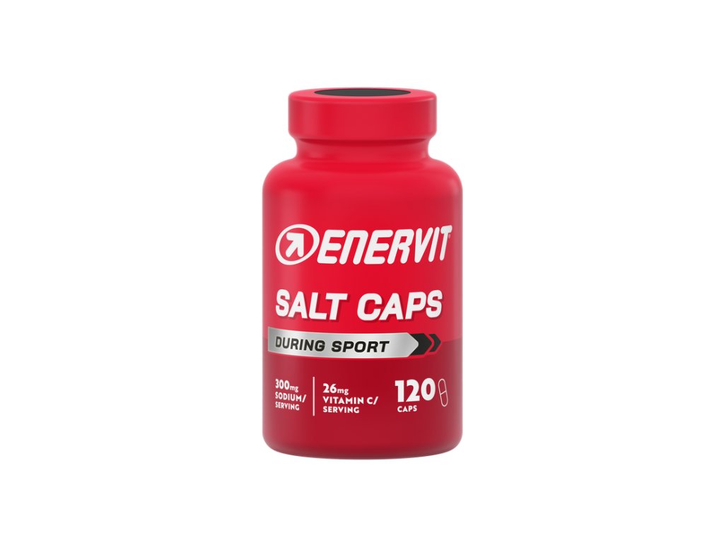 Med zahtevnimi športnimi nastopi telo ne izgublja le tekočine, temveč tudi pomembne minerale – zlasti natrij, ki je glavna sestavina znoja. Njegova izguba lahko povzroči elektrolitsko neravnovesje in posledične mišične krče, zmanjšano zmogljivost ali prezgodnjo utrujenost. Enervit Salt Caps pomagajo nadomestiti te izgube in hkrati zagotavljajo ključne vitamine za vzdrževanje presnove med telesno obremenitvijo. Zahvaljujoč praktični obliki kapsul lahko odmerek enostavno prilagodite intenzivnosti nastopa in podnebnim razmeram. Primerno tudi za dolge tekme ali trening v vročini.