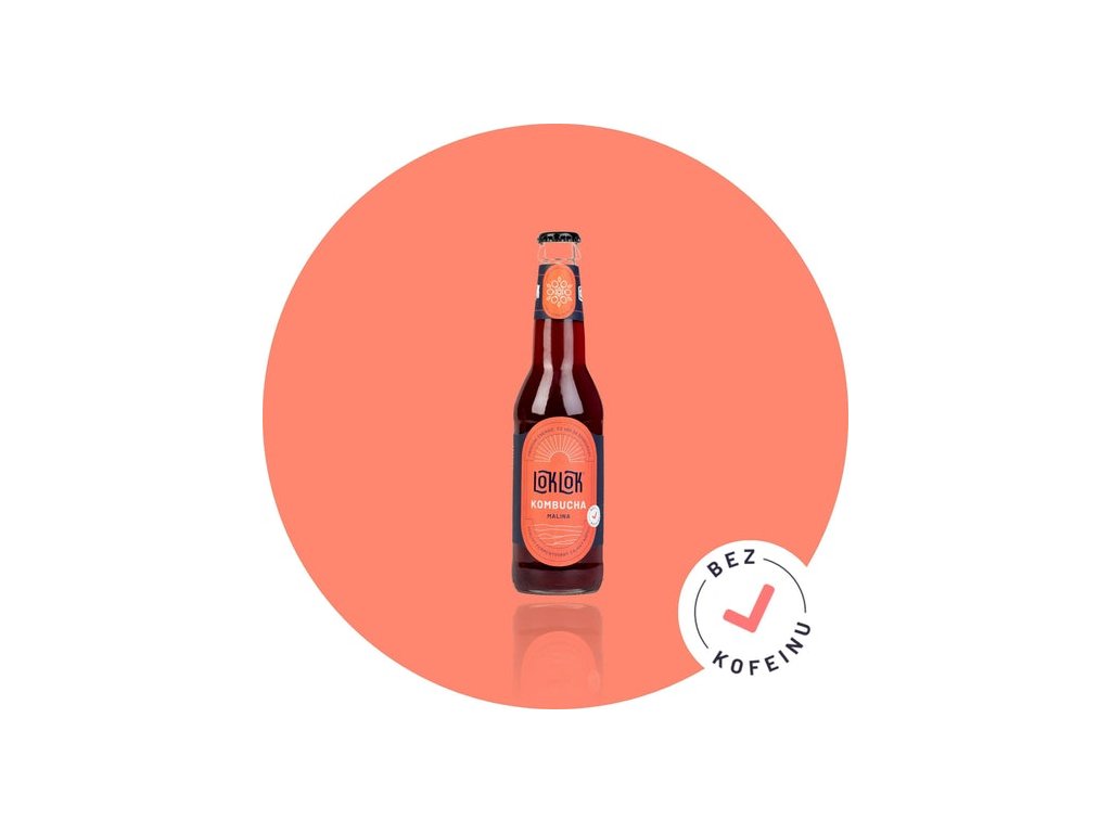 čajni poparek (filtrirana voda, čaj brez kofeina), malina (4,5%), trsni sladkor, aronija, kombucha kultura bakterij in kvasovk, limonin sok, ogljikov dioksid, probiotične bakterije Bacillus Coagulans MTCC 5856