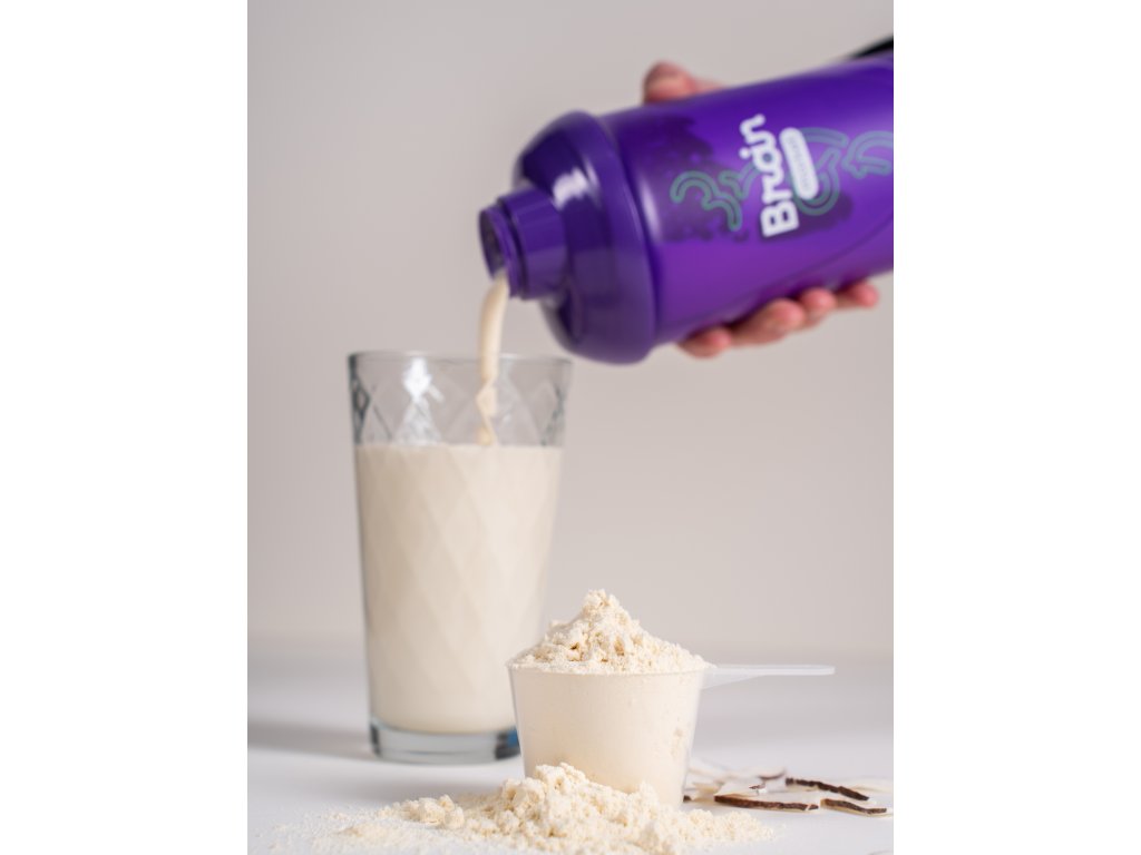 Stresalnik BrainMarket s prostornino 600 ml je izdelan iz visokokakovostne, zdravstveno varne plastike brez BPA, ki ustreza trenutnim standardom za varno shranjevanje in uživanje pijač. Vijolični stresalnik dopolnjuje zelen pokrovček z varnostnim navojem, ki zagotavlja tesnost tudi med dinamičnim mešanjem. Notranja mrežica preprečuje nastanek grudic. Opremljen je z značilnim logotipom BrainMarket na obeh straneh in je popolnoma združljiv tako z beljakovinskimi kot rastlinskimi in funkcionalnimi pijačami.