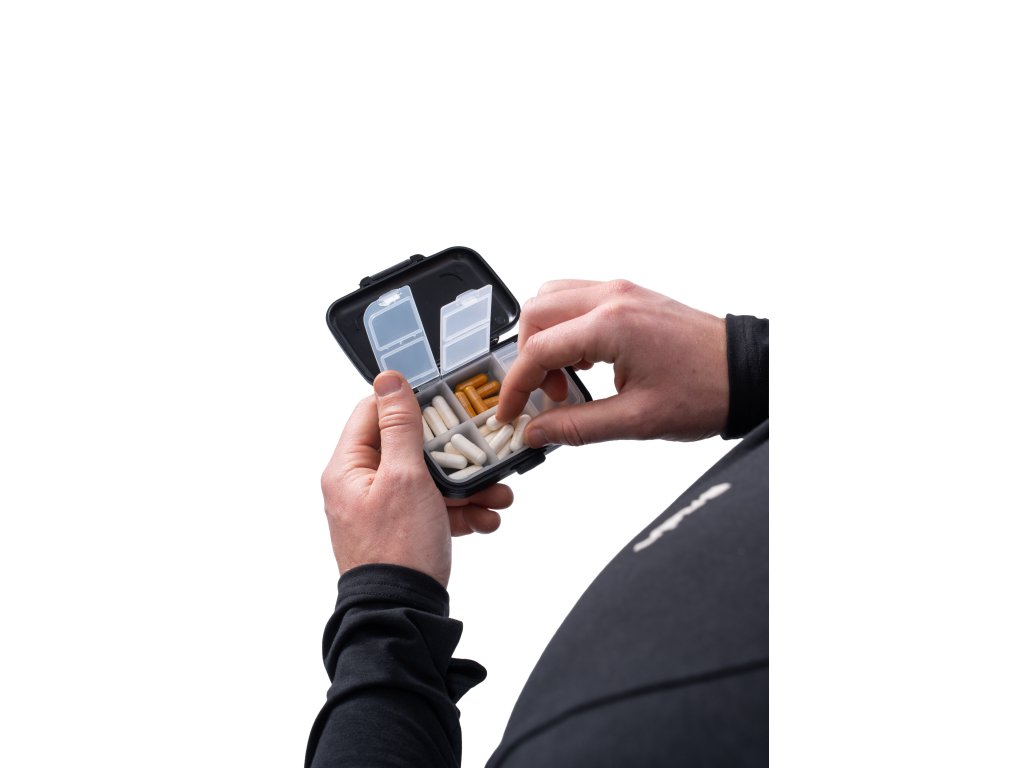 Ne glede na to, ali redno hodite v fitnes in so prehranska dopolnila za vas pot do boljših rezultatov ali želite podpreti splošno kondicijo telesa s pomočjo vitaminov in mineralov, praktičen pillbox vam vsekakor ne bi smel manjkati. Ta posoda za kapsule vam bo pomagala imeti dnevno suplementacijo popolnoma pod nadzorom. Nič več iskanja raztresenih kapsul na dnu nahrbtnika ali torbe in nobenega nepotrebnega nošenja celih pakiranj. Vse imate pregledno urejeno in vedno pri roki. Po nekaj dneh uporabe si boste le stežka predstavljali, da ste kdaj delovali brez pillboxa.