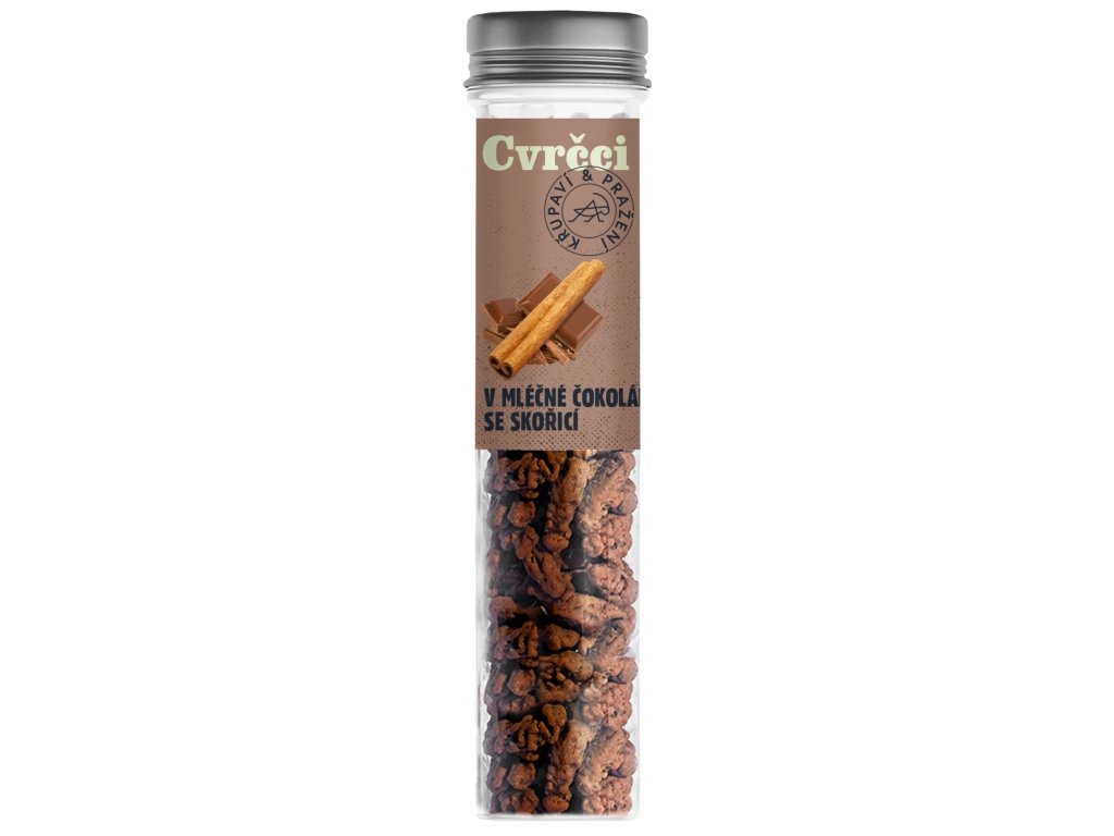 Sens - Hrustljavo pečeni črički v epruveti, v mlečni čokoladi s cimetom, 30 g *Certifikat CZ-BIO-003