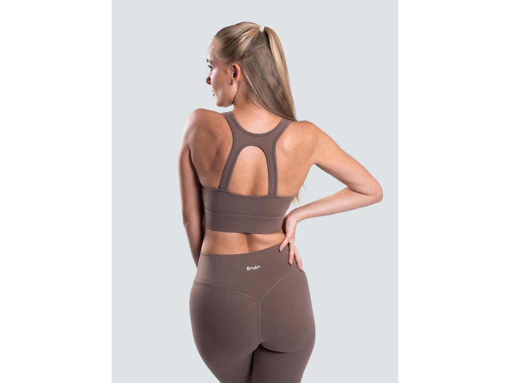 Ženski športni top Brain z izrezom, rjave barve Ženski udoben športni top